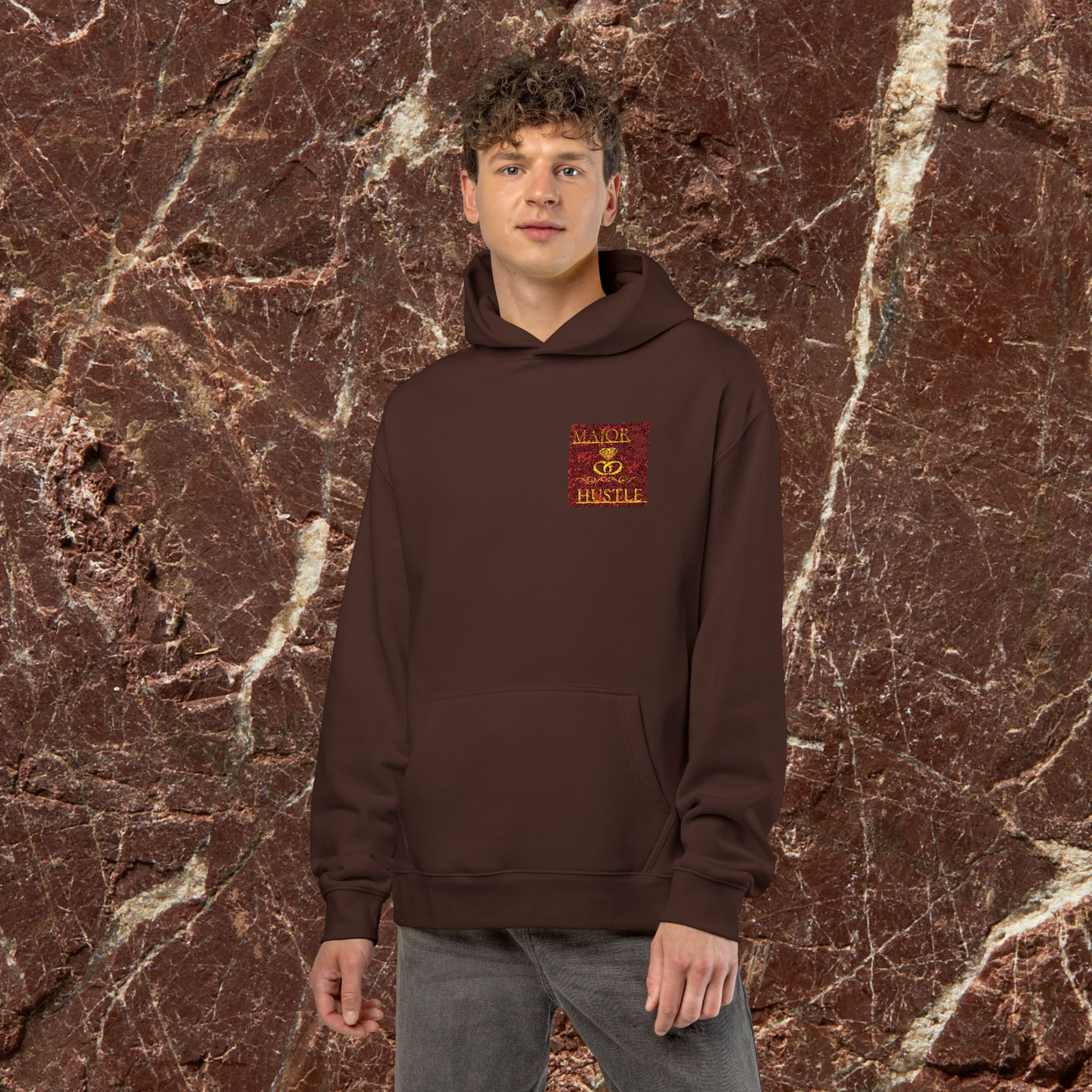 Relaxed Hoodie with Vintage Gold Dragon Chest Patch — Cozy Streetwear Pullover
